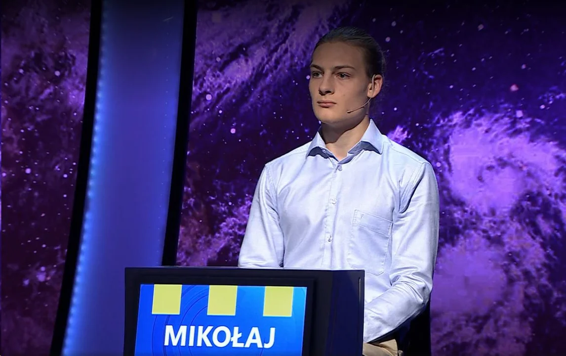 Mikołaj musiał stawić czoła dziewięciu konkurentom oraz pytaniom zadawanym przez Tadeusza Sznuka. Gra o finał toczyła się do momentu, gdy na polu walki pozostało trzech zawodników. Na jakie pytania trafił absolwent I LO? Jak sobie z nimi poradził?
