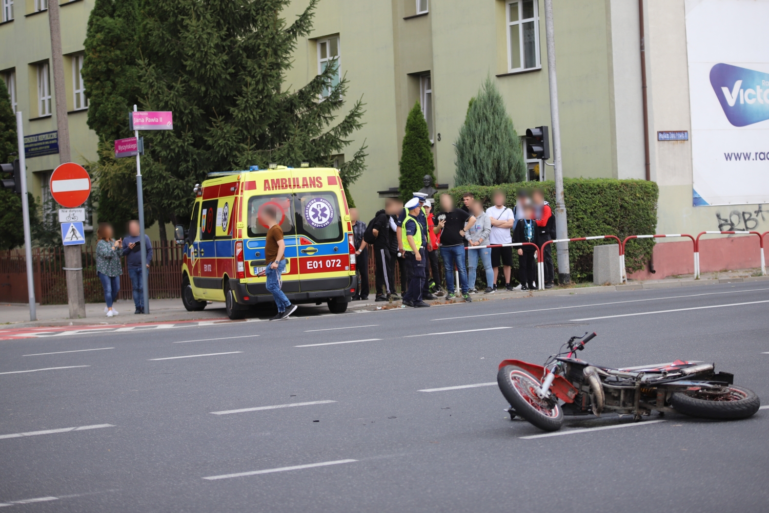 Na miejscu działania prowadzą funkcjonariusze policji oraz zespół ratownictwa medycznego. Poszkodowany został młody mężczyzna, kierowca motocykla. Wygląda na to, że nie doznał poważniejszych obrażeń.
