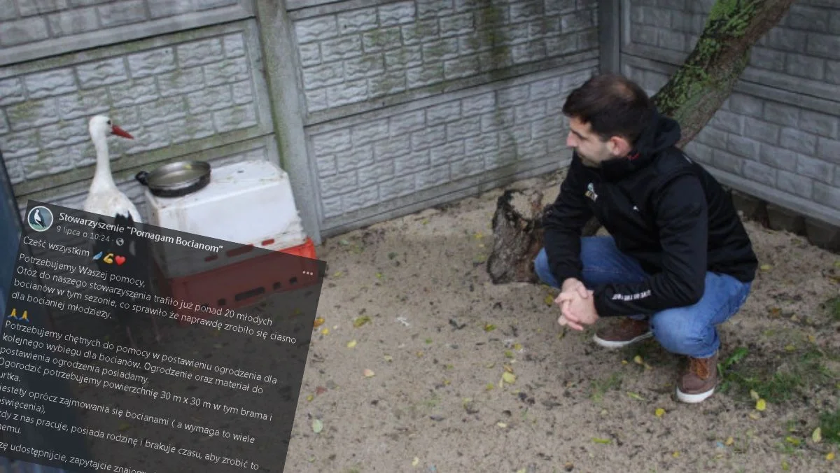 - Potrzebujemy Waszej pomocy. Otóż do naszego stowarzyszenia trafiło już ponad 20 młodych bocianów w tym sezonie, co sprawiło że naprawdę zrobiło się ciasno dla bocianiej młodzieży. Potrzebujemy chętnych do pomocy w postawieniu ogrodzenia dla kolejnego wybiegu dla bocianów – mówi Artur Paul ze Stowarzyszenia „Pomagam Bocianom”.
