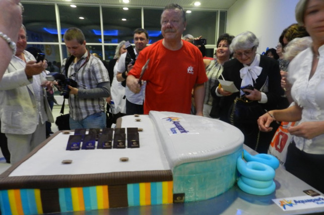 Po występach przyszedł czas na lampkę szampana i tort... w kształcie Aquaparku.