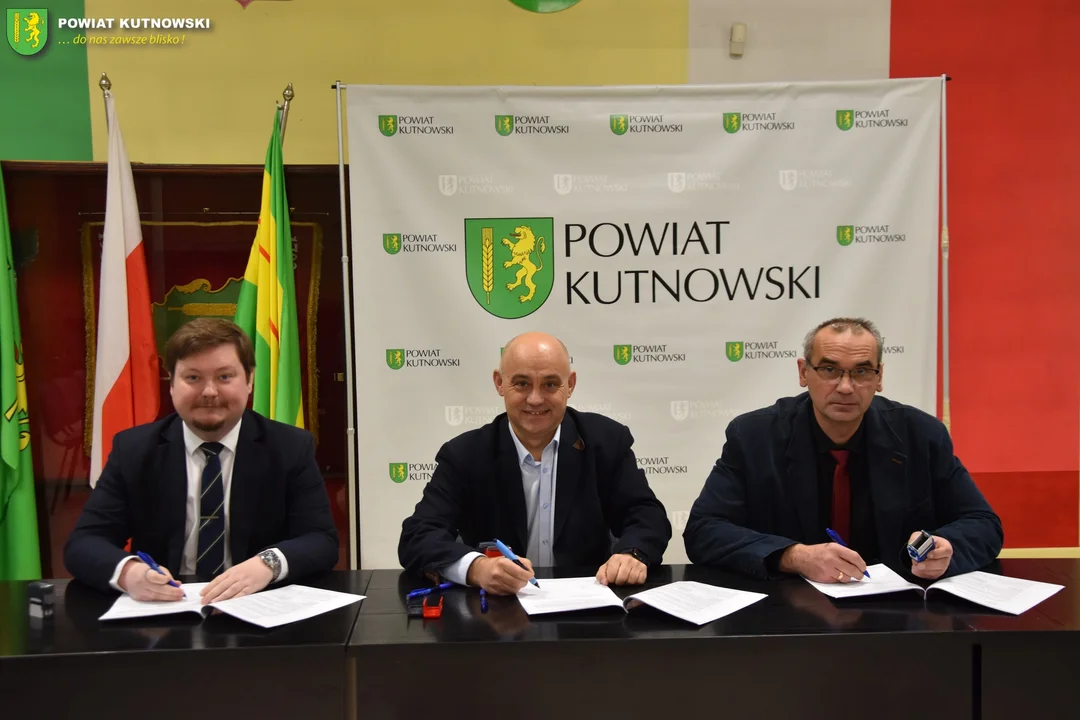 Starosta Daniel Kowalik i członek Zarządu Powiatu Kutnowskiego, Tomasz Walczewski, podpisali umowę na świadczenie usług w zakresie publicznego transportu zbiorowego z przedstawicielem PKS Gostynin Sp. z o.o. oraz przedstawicielem PKS Łęczyca.
