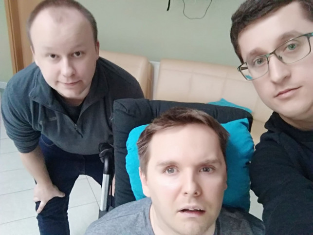 - Cześć, chcieliśmy przekazać podziękowania od rodziców Bartka za zebrane środki. Odwiedziliśmy Borysa w Bydgoszczy (zdj. w I komentarzu) i mieliśmy okazję go serdecznie uściskać, jak również spotkać się z jego mamą Kasią i tatą Sławkiem, którzy mimo trudnej sytuacji w jakiej są, praktycznie nie przestawali się uśmiechać. Ośrodek, gdzie przebywa Bartek jest idealny do rehabilitacji w jego obecnym stanie - Borys jest w stanie ruszać rękami i nogami (choć w przewadze są to jeszcze spięcia, a nie świadome ruchy), jego wzrok jest przytomny za wyjątkiem momentów, gdy czasem "odpływa" i przymyka oczy. Wyraźnie wzruszył się jak nas zobaczył, jak i był niepocieszony, gdy musieliśmy jechać. Rehabilitacja to klucz - nasz przyjaciel dzieli pokój z Arturem "Arczim", który był w podobnej do Bartka sytuacji 4 lata temu. Obecnie może samemu chodzić, mówić, i włączać sobie ulubiony "Gang Olsena". :) Bartek ma najlepszego rehabilitanta na świecie, Dawida, który nie tylko jest doskonałym fachowcem, ale i jego przyjacielem.