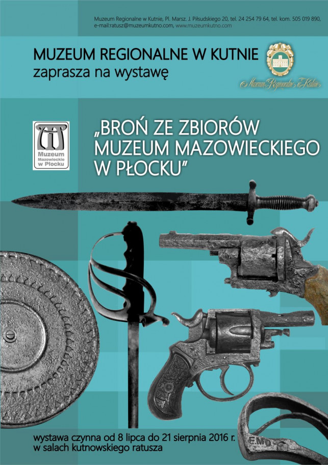 WydarzeniaMuzeum Regionalne w Kutnie zaprasza 8 lipca o godz. 14:30 na wernisaż wystawy „Broń ze zbiorów Muzeum Mazowieckiego w Płocku”. Na ekspozycji można będzie obejrzeć broń białą i palną od średniowiecza do XX wieku.W pierwszej części wystawy zaprezentowana zostanie broń biała (czternastowieczny miecz, szable polskie i europejskie, pałasze i bagnety, w większości z XIX i XX w.), która na co dzień przechowywana jest w magazynach płockiego muzeum. Niektóre egzemplarze znalezione zostały w starym budynku teatru płockiego (na miejscu obecnego kina „Przedwiośnie”) i początkowo w muzeum były traktowane jako rekwizyty teatralne. Dopiero prof. Ryszard de Latour na początku lat osiemdziesiątych XX w. stwierdził, że są to egzemplarze broni z pola walki. Tę część ekspozycji uzupełnią plansze pokazujące budowę różnych rodzajów broni i techniki walki nimi.
