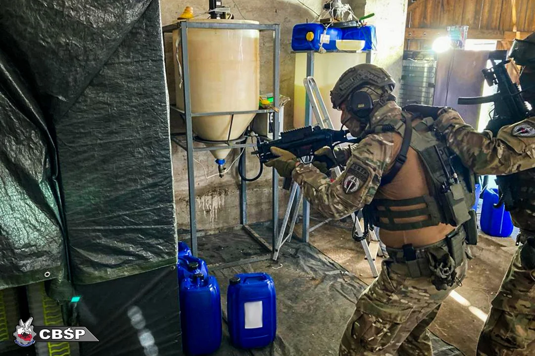 CBŚ opisuje, że znajdowało się tam laboratorium. Mundurowi dodają, że okazało się, że w stodole odbywała się właśnie synteza klefedronu.