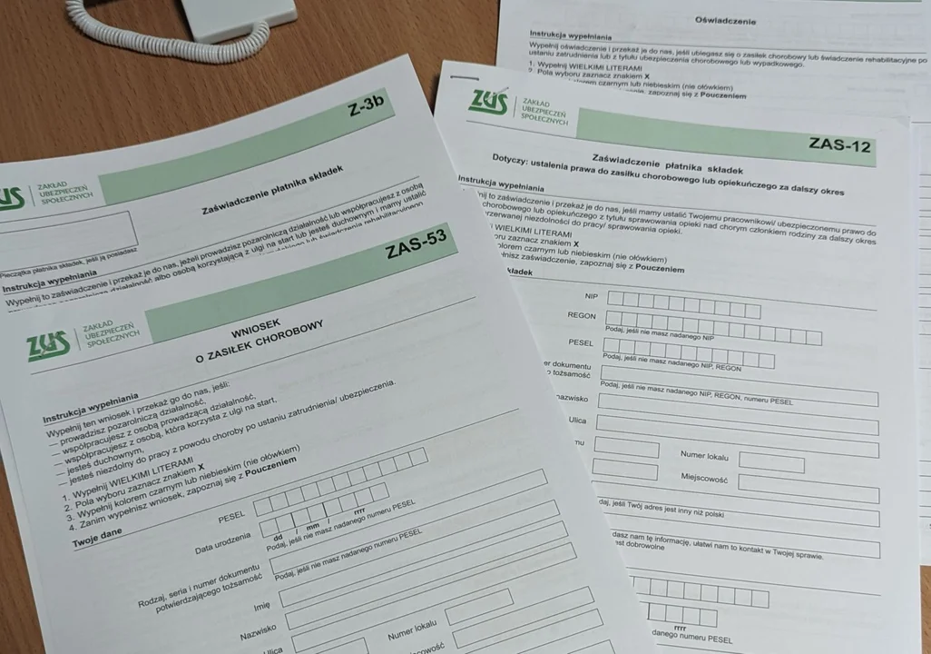 - Wniosek o zasiłek chorobowy można złożyć osobiście w placówce ZUS, wysłać go pocztą lub przesłać elektronicznie przez PUE ZUS – informuje Monika Kiełczyńska, regionalna rzeczniczka prasowa ZUS województwa łódzkiego. - Osoby prowadzące pozarolniczą działalność gospodarczą, osoby z nimi współpracujące oraz osoby duchowne wniosek o chorobowe składają do ZUS-u na druku Z-3b lub ZAS-53. Natomiast osoby, które są uprawnione do zasiłku po ustaniu zatrudnienia składają wniosek na druku ZAS-53. Dodatkowo przy pierwszym e-ZLA, które obejmuje okres po ustaniu tytułu ubezpieczenia, do wniosku muszą dołączyć oświadczenie na druku Z-10 – dodaje rzeczniczka.