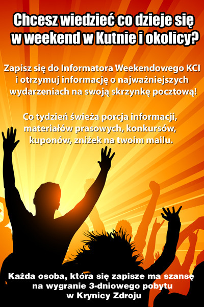 Uwaga!!! Wśród osób, które zapiszą się do Informatora Weekendowego KCI rozlosujemy voucher uprawniający do 3-dniowego pobytu w hotelu "Chata na stoku" w Krynicy Zdroju.