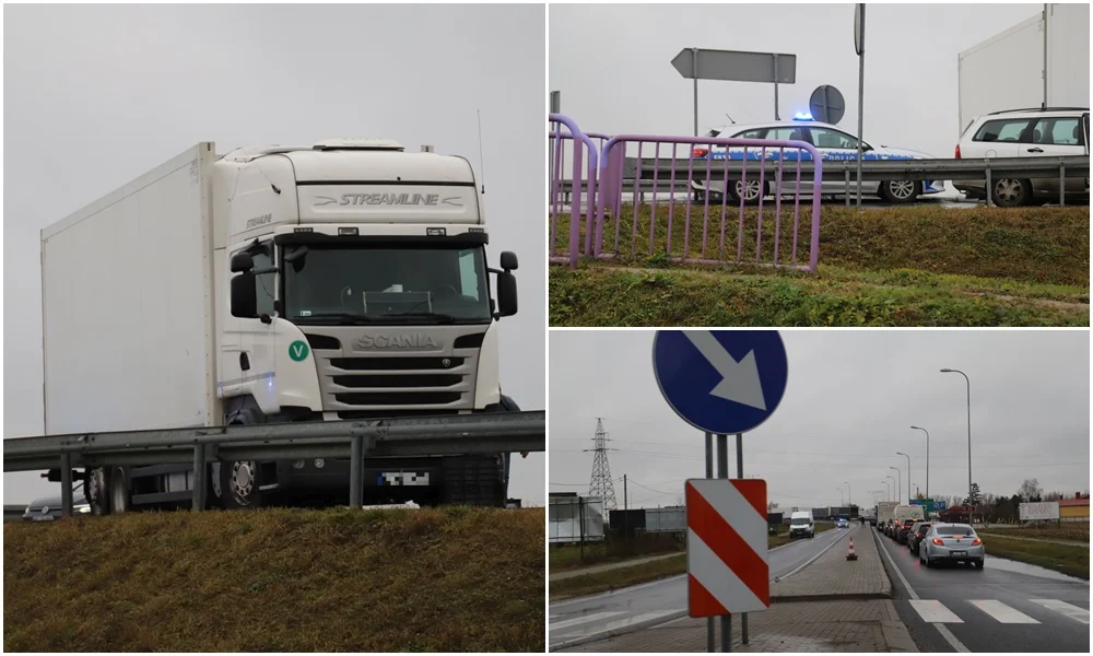 Do zdarzenia doszło dziś przed godz. 10:00 na drodze krajowej nr 60 w miejscowości Sójki (gm. Strzelce). Z nieznanych na chwilę obecną przyczyn samochód ciężarowy marki scania „utknął” na rondzie, znacznie utrudniając tym samym ruch we wszystkich kierunkach.
