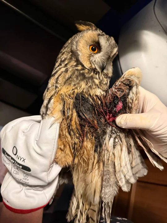 Sowa była ofiarą kolizji z linią energetyczną. Świadczyły o tym jej rozległe rany, m.in. wyraźnie spalone pióra, otwarte złamanie lewego skrzydła oraz silny stres i ogólne osłabienie organizmu.