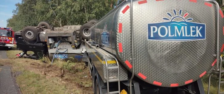 - Dyżurny do działań zadysponował zastępy z Jednostki Ratowniczo-Gaśniczej w Kole, Jednostki Ratowniczo-Gaśniczej w Koninie oraz zastępy OSP z Mostek, Mąkolna i Sompolna. W wyniku rozpoznania ustalono, że doszło do dachowania autocysterny natomiast cysterna przewożącą mleko stoi na kołach – relacjonuje mł. asp. Łukasz Nowakowski z KP PSP w Kole.