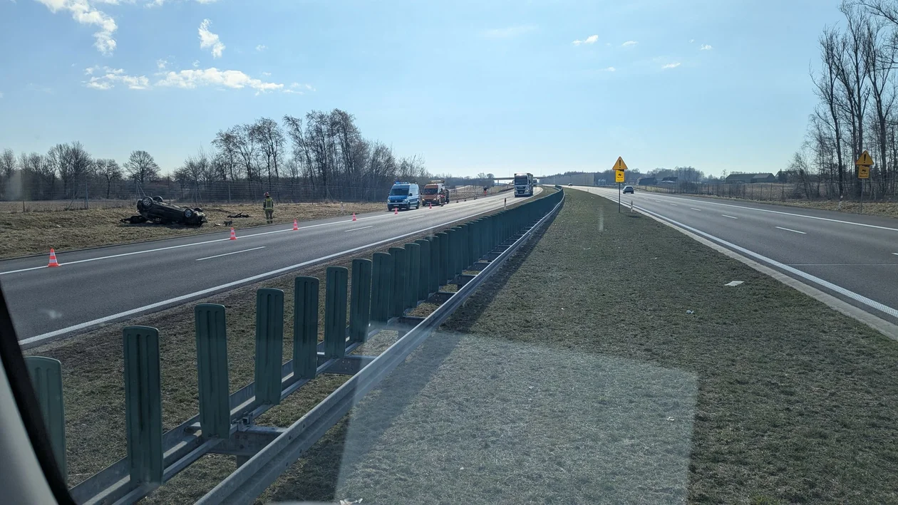 Wypadek na A1, dachowało auto