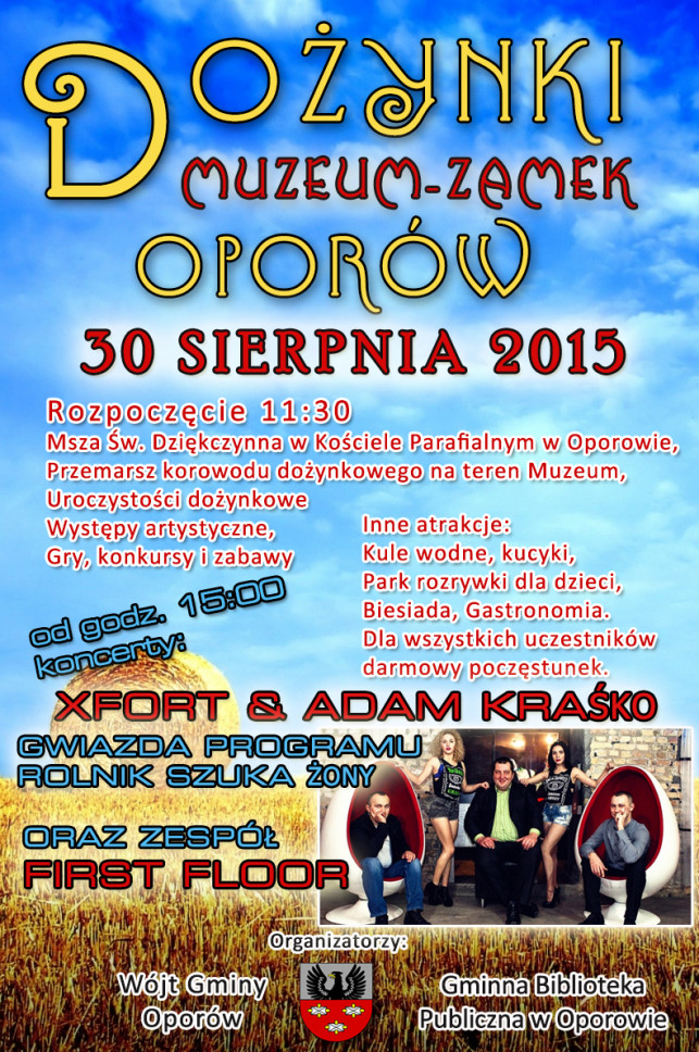 Urząd Gminy w Oporowie oraz Gminna Biblioteka Publiczna w Oporowie zapraszan na dożynki gminne, które odbędą się 30 sierpnia w muzeum - zamku.