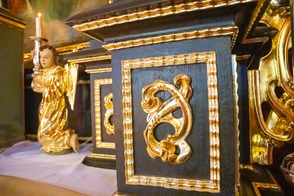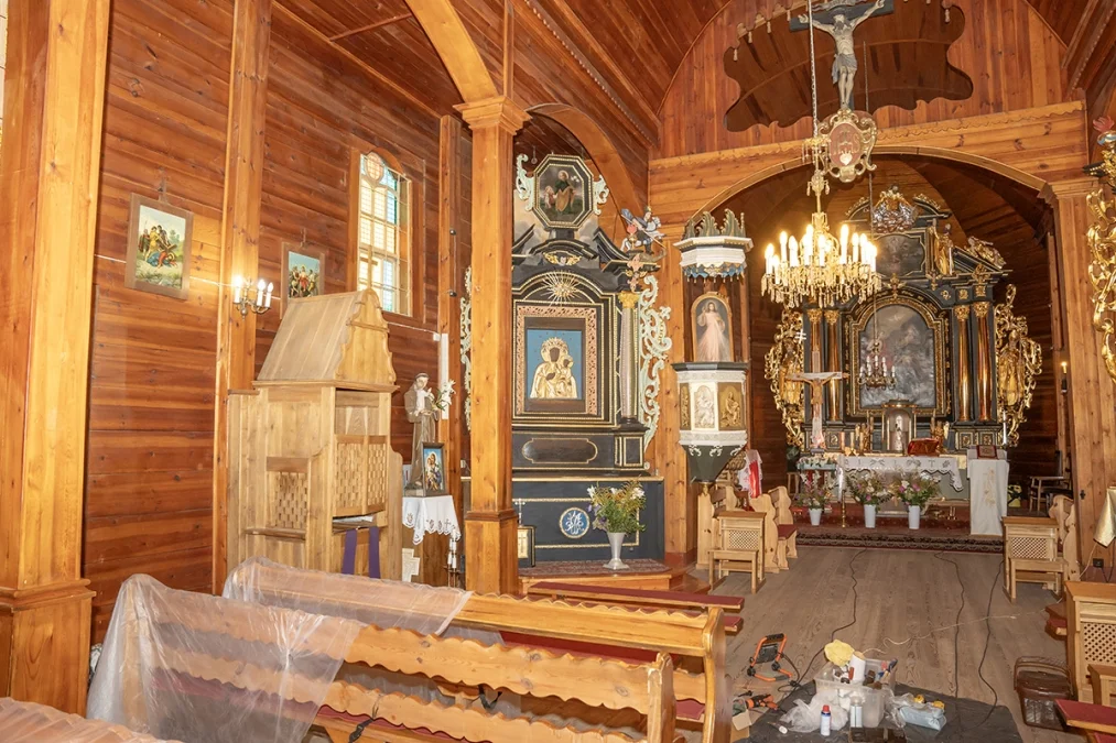 Dzięki wsparciu dotacyjnemu i pracy konserwatorów wnętrze nadal zachowuje barokowe ołtaże, ambonę z baldachimem i inne wartościowe elementy.