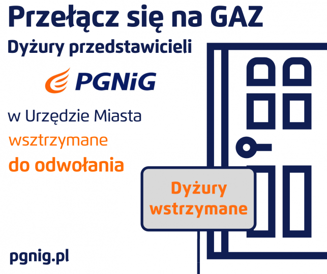 - W związku z zaistniałą sytuacją epidemiologiczną dyżury przedstawicieli PGNiG, które odbywały się w Urzędzie Miasta Kutna w każdą pierwszą środę miesiąca, zostają wstrzymane do odwołania. O możliwości wznowienia dyżurów będziemy informować na bieżąco - informuje urząd miasta.