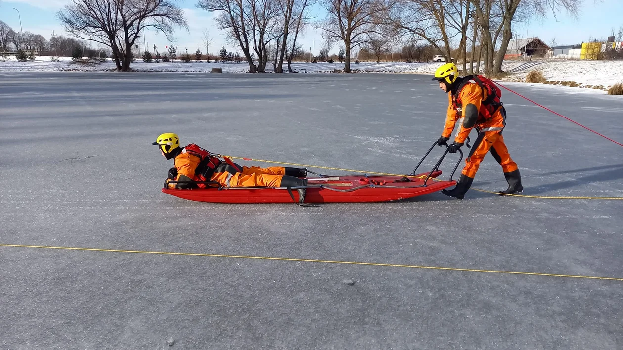 - Celem ćwiczeń jest przećwiczenie technik ewakuacji poszkodowanego pod którym załamała się tafla lodu, doskonalenie umiejętności posługiwania się sprzętem do ratownictwa wodnego i lodowego, umiejętności ewakuowania osoby poszkodowanej poza lód oraz poruszanie się po lodzie przy użyciu podstawowego sprzętu do ratownictwa lodowego – przekazuje asp. Krzysztof Orłowski, oficer prasowy Komendy Powiatowej Państwowej Straży Pożarnej w Kutnie.