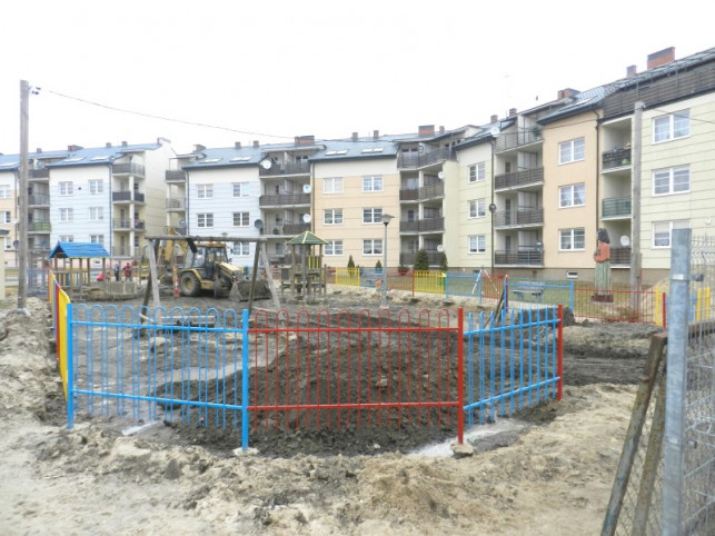 Ukończenie robót związanych z budową placu zabaw planowano na 1 czerwca. Zabawki oraz profesjonalny sprzęt fitness nie dotarły jednak na czas, w wyniku czego najmłodsi na skorzystanie z uciech placu zabaw będą musieli jeszcze poczekać. Jak powiedział nam prezes Towarzystwa Budownictwa Społecznego, Jacek Urbaniak, zamówienie z Chin dotrzeć ma dopiero 7 lipca. Następnie będą trwały prace związane z instalacją sprzętu, tj. zabetonowaniem, położeniem warstwy tłuczka oraz warstwy poliuretanowej.
