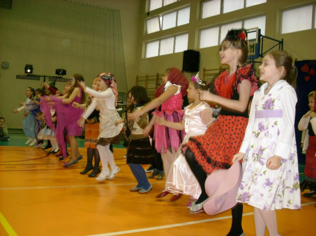 Na powitanie tak ważnych gości, klasy I b i II a pod kierunkiem wychowawczyń – p. Haliny Cieślak i Małgorzaty Minkuszek, przygotowały program artystyczny. Było dużo ruchu, tańca i śpiewu. Dalsza część balu to zabawa pod kierunkiem wodzireja. Dzieci przebrane w barwne i pomysłowe stroje świetnie się bawiły a skoczna i rytmiczna muzyka zachęcała do tańców zarówno dzieci, jak i dorosłych.