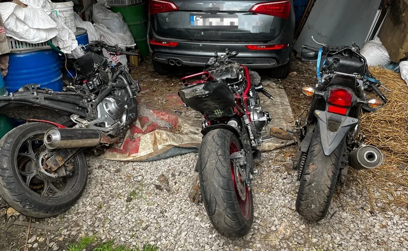 Pod wskazanym adresem, w garażu policjanci zabezpieczyli motocykl, który pochodził z kradzieży. Jednak to był dopiero początek. Okazało się, że na terenie posesji znajduje się kilka innych motocykli, częściowo już rozebranych z usuniętymi numerami vin.