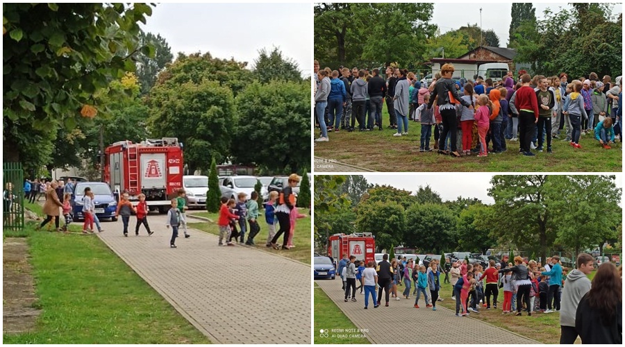 W jednej z kutnowskich szkół podstawowych przeprowadzono ewakuację budynku. Były to ćwiczenia pod okiem straży pożarnej | fot. Szkoła Podstawowa nr 4 Kutno