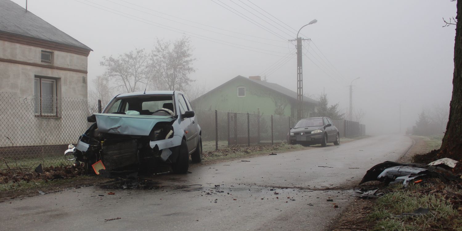 [FOTO] Samochód uderzył w drzewo, potem w ogrodzenie