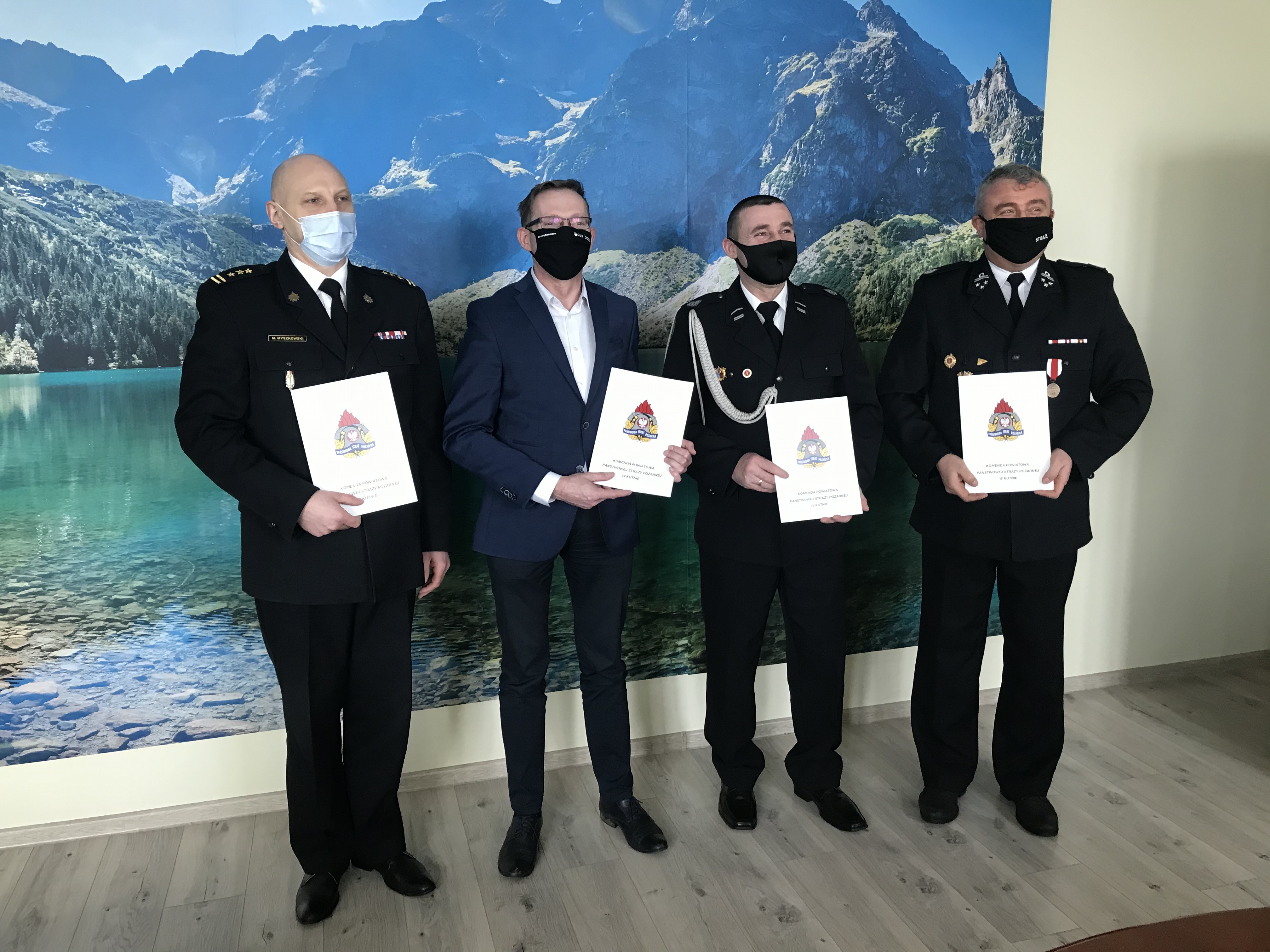 Porozumienie podpisali: Komendant Powiatowy PSP w Kutnie wspólnie, wójtem Gminy Bedlno oraz prezes i naczelnik OSP Pniewo.