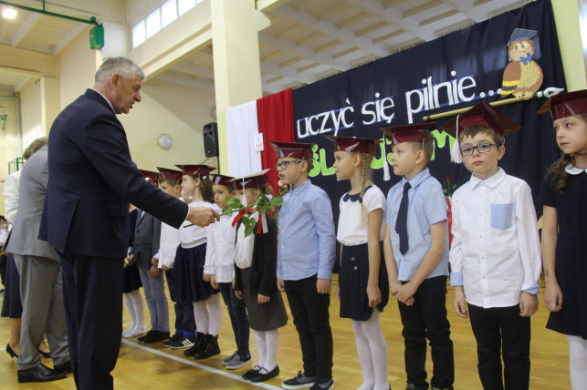 Gdy emocje i stres już opadły, do głosu doszli kolejno pan Zbigniew Burzyński i Juliusz Sieradzon. Złożyli oni życzenia oficjalnie przyjętym w grono społeczności szkolnej uczniom. Na koniec na dzieciaki czekała miła niespodzianka, gdyż wręczone zostały im prezenty na początek edukacyjnej drogi. Po zakończeniu uroczystości, dzieci wraz z rodzicami i wychowawcami zrobili sobie pamiątkowe zjęcia.