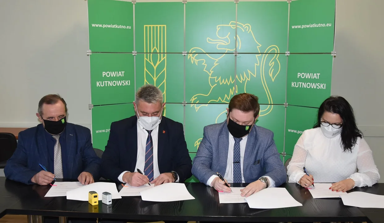 Umowę podpisali starosta kutnowski Daniel Kowalik, wicestarosta Magdalena Krupińska-Kotulska, członek Zarządu Marek Kubasiński oraz wójt gminy Strzelce Tomasz Grabowski.