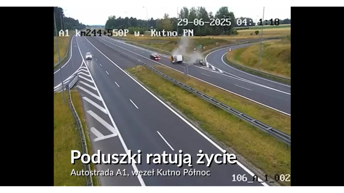 Nagranie z całego incydentu, opublikowane na platformie X przez łódzki oddział Generalnej Dyrekcji Dróg Krajowych i Autostrad (GDDKiA), ukazuje, jak jedno z aut, jadąc z dużą prędkością, uderza w poduszkę zderzeniową, przekoziołkuje i ostatecznie ląduje na kołach.