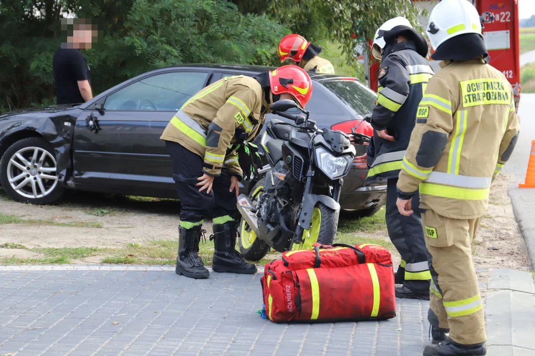 Ok. godz. 8.00 w miejscowości Strzegocin (gmina Kutno) motocykl zderzył się z osobowym audi. Na miejscu działania prowadzą: straż pożarna, policja i zespół ratownictwa medycznego.