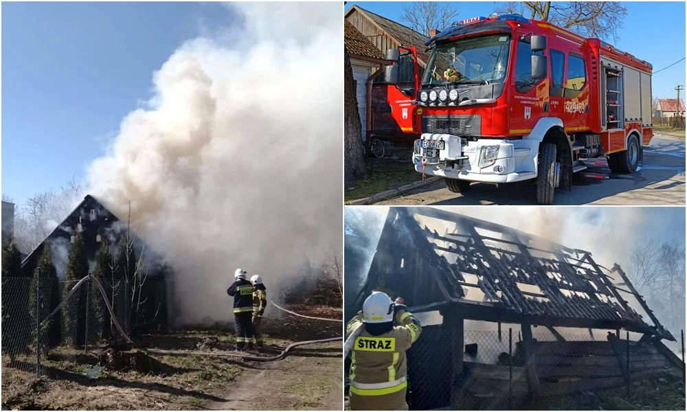 Groźny pożar pod Kutnem. Drewniany budynek doszczętnie spłonął | fot. OSP Krośniewice