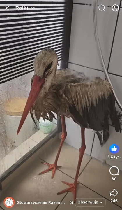 Bocian trafił pod opiekę Stowarzyszenia Razem dla Zwierząt. Jak relacjonują wolontariusze, ptak był skrajnie osłabiony, ale bez widocznych urazów czy złamań. Nie mógł jednak wzbić się w powietrze, substancja na piórach praktycznie go unieruchomiła.