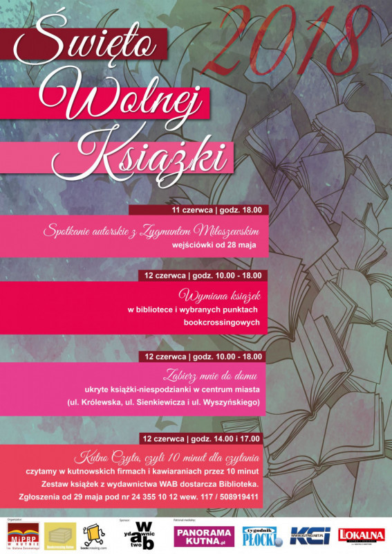 Już po raz czwarty 12 czerwca kutnowscy miłośnicy swobodnej wymiany książek obchodzić będą swoje święto- włączając się tym samym do obchodów XV edycji Ogólnopolskiego Święta Wolnych Książek.