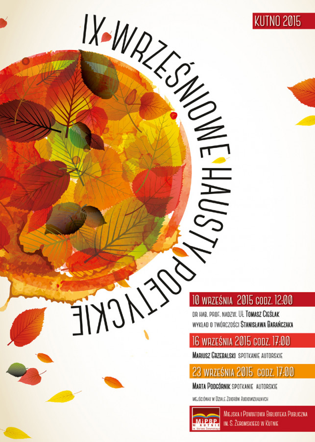 Miejska i Powiatowa Biblioteka Publiczna w Kutnie zaprasza na IX Wrześniowe Hausty Poetyckie.