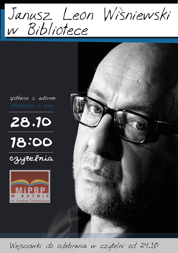 28 października o godzinie 18 w czytelni Miejskiej i Powiatowej Biblioteki Publicznej w Kutnie odbędzie się spotkanie z Januszem Leonem Wiśniewskim - autorem książki "S@motności w sieci".
