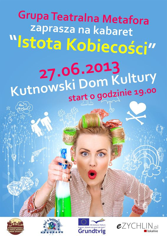 Grupa Teatralna "Metafora" zaprasza na kabaret "Istota Kobiecości". Występ odbędzie się w czwartek, 27 czerwca w Kutnowskim Domu Kultury. Rozpoczęcie spektaklu przewidziano na godzinę 19:00. Młodzież od 2011 roku działa przy Stowarzyszeniu na Rzecz Rozwoju Gminy Żychlin.