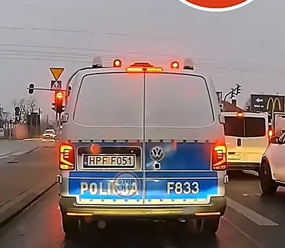 Wszystko miało miejsce w ubiegły piątek (5 grudnia 2025). Kanał Stop Cham podzielił się z internautami nagraniem, na którym widzimy policyjny, oznakowany pojazd.