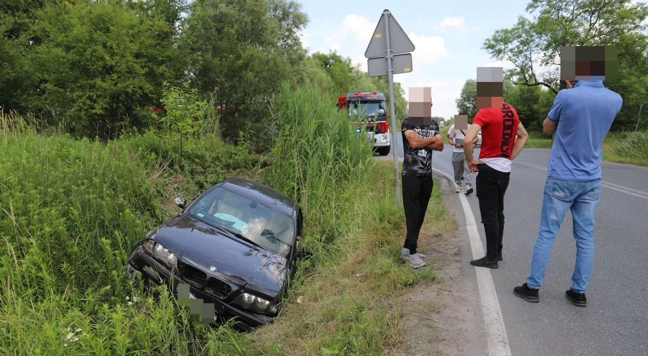 Kierowca auta z nieznanych na tę chwilę przyczyn stracił panowanie nad pojazdem, wypadł z jezdni i wjechał do przydrożnego rowu.
