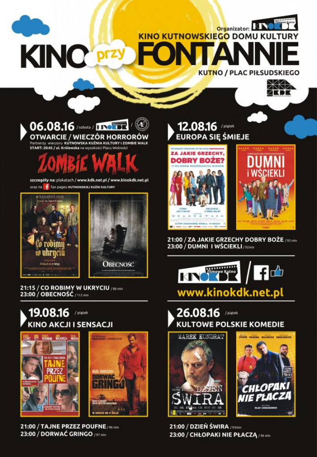 Ostatni pokaz kina przy fontannie przypada na 26 sierpnia, wtedy o godz. 21 film "Dzień świra", natomiast o godz. 23 "Chłopaki nie płaczą".