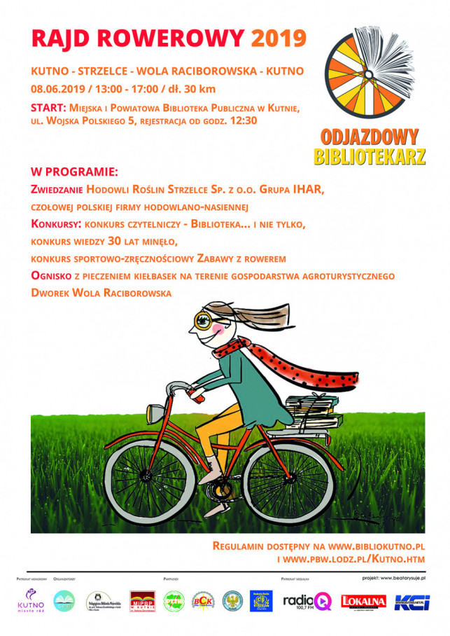 WydarzeniaStowarzyszenie Przyjaciół Biblioteki, Pedagogiczna Biblioteka Wojewódzka im. prof. T. Kotarbińskiego filia w Kutnie oraz MiPBP w Kutnie zapraszają na VII edycję rajdu rowerowego Odjazdowy Bibliotekarz.