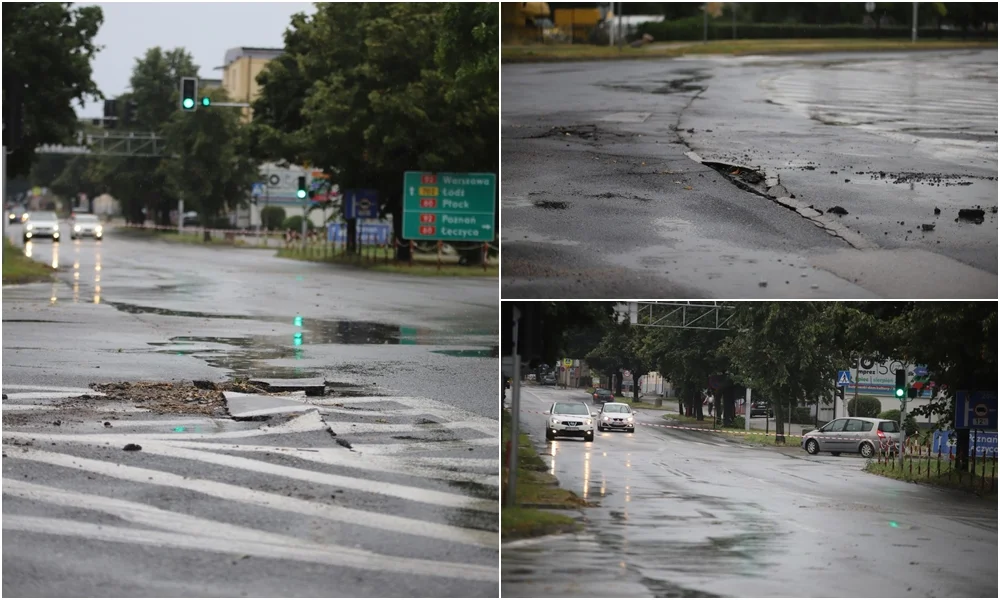 Droga ucierpiała także na al. ZHP. Tam w niektórych miejscach jezdnia się zapadła, w innych wybiła do góry, stwarzając zagrożenie dla aut. Przejazd w kierunku ul. Jana Pawła II na chwilę obecną jest zamknięty.