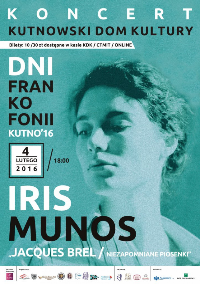 Już w przyszły czwartek o godz. 18.00 w Kutnowskim Domu Kultury wystąpi francuska aktorka i piosenkarka Iris Munos.