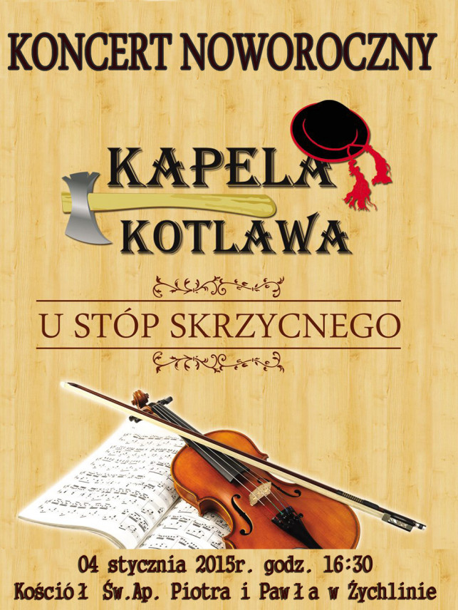 4 stycznia w kościele św. ap. Piotra i Pawła w Żychlinie odbędzie się koncert noworoczny "U stóp Skrzycnego". Kapela Kotlawa rozpocznie swój występ o godz. 16:30.