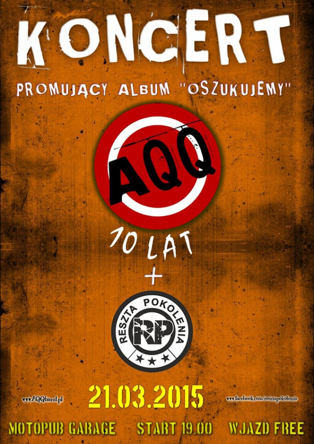 WydarzeniaRozpocznij wiosnę na rockowo! Zapraszamy na koncert, który odbędzie się w sobotę, 21 marca w MOTO PUB Garage (Grunwaldzka 37). Koncert rozpocznie się o godzinie 19:00, a zagrają dwie płockie kapele: AQQ i Reszta Pokolenia.