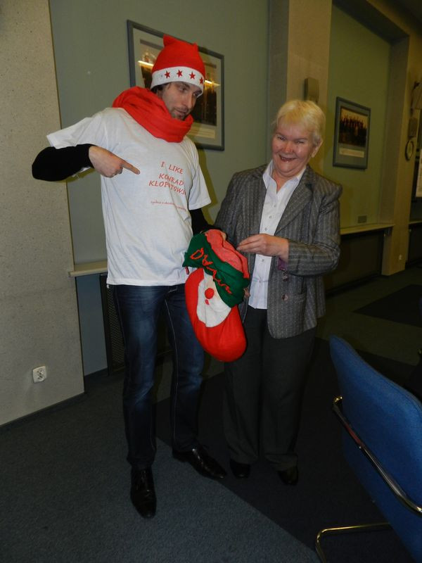 WydarzeniaKoszulka “I LIKE KONRAD KŁOPOTOWSKI zgodnie z obietnicą Bartosza Serendy trafiła na aukcję Wielkiej Orkiestry Świątecznej Pomocy.Przypomnijmy, że w czerwcu ubiegłego roku Bartosz Serenda zadeklarował, że jeśli Polska nie wyjdzie ze swojej grupy podczas Euro 2012 - na znak smutku po zmarnowanej szansie - założy koszulkę z „lajkiem” dla Konrada Kłopotowskiego.Sześć miesięcy później rajca zaprezentował podczas przerwy sesyjnej koszulkę z „lajkiem” wicestarosty Konrada Kłopotowskiego. Przy tej okazji w czapce Mikołaja rozdawał cukierki.