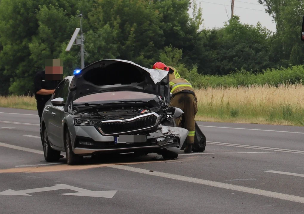 Kierowcy muszą liczyć się z utrudnieniami. Jeden z pojazdów uczestniczących w zdarzeniu częściowo blokuje skrzyżowanie.