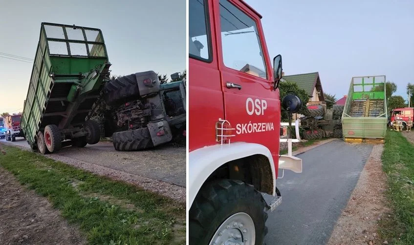 Kierowca traktora wyszedł z kraksy bez szwanku. Straż pożarna zakończyła działania o godz. 20.18. Zdarzenie na swojej stronie internetowej relacjonują strażacy z OSP Skórzewa.