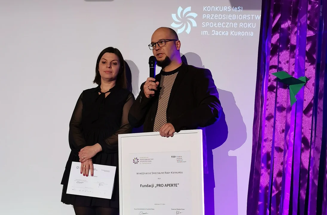 - Fundacja Pro Aperte z Kutna otrzymała wyróżnienie specjalne za wysokiej jakości kompleksowe usługi wsparcia osób szczególnie potrzebujących, za profesjonalną odpowiedź na palące problemy społeczne, za innowacyjność w działaniu, konsekwencję i spójność oraz świadome planowanie swojego rozwoju. Fundacja prowadzi świetlicę terapeutyczną, w której odbywają się zajęcia indywidualne i grupowe dla dzieci w spektrum autyzmu oraz z deficytami emocjonalnymi. Oferuje także innowacyjną mobilną świetlicę terapeutyczną. Fundacja prowadzi także diagnozy funkcjonalności dzieci, poziomu inteligencji a także kliniczną kompleksową diagnozę w kierunku autyzmu. Oprócz tego prowadzi charytatywny sklep online, organizuje eventy oraz oferuje usługi porządkowe. Zatrudnia 44 osoby, z czego połowa z grupy zagrożonych wykluczeniem - wyjaśnia Fundacja Inicjatyw Społeczno-Ekonomicznych.