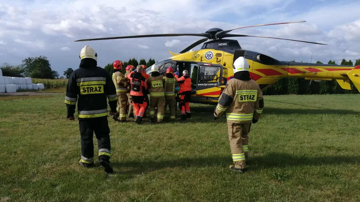W gminie Bedlno lądował śmigłowiec Ratownik 16 z bazy w Łodzi. Straż pożarna poinformowała, że poszkodowany mężczyzna został zabrany na pokładzie maszyny do jednego z łódzkich szpitali.