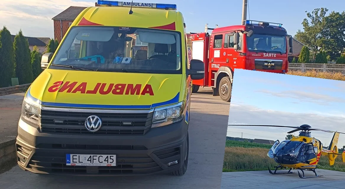 Na miejscu pojawiły się dwa zastępy z Jednostki Ratowniczo-Gaśniczej Kutno oraz jeden zastęp OSP Krośniewice. Jak relacjonują druhowie, konieczne było wezwanie karetki. Lądował również śmigłowiec Lotniczego Pogotowia Ratunkowego.