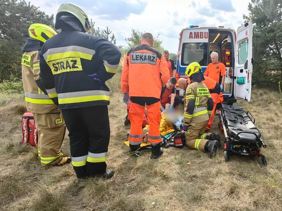 Ze względu na poważne poparzenia dużej powierzchni ciała, w tym rąk, nóg, brzucha, klatki piersiowej oraz dróg oddechowych, zdecydowano o przetransportowaniu 69-latka helikopterem Lotniczego Pogotowia Ratunkowego do Szpitala w Warszawie.