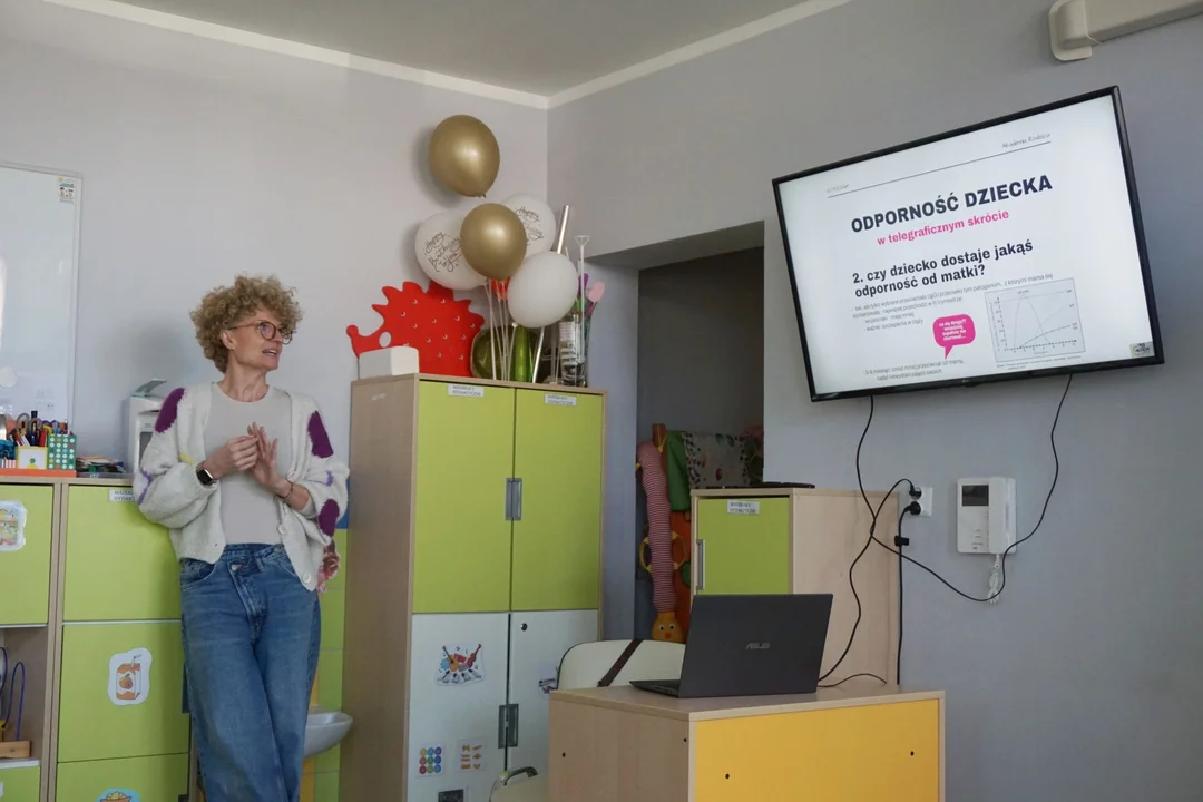 Pierwsze zajęcia poprowadziła dr Joanna Świdrowska-Jaros – pediatra, ordynator Oddziału Pediatrii Kutnowskiego Szpitala Samorządowego. Rodzice uczestniczący w tym wykładzie mogli się dowiedzieć, jak postępować w infekcjach typu kaszel czy katar, kiedy niezwłocznie udać się do lekarza.